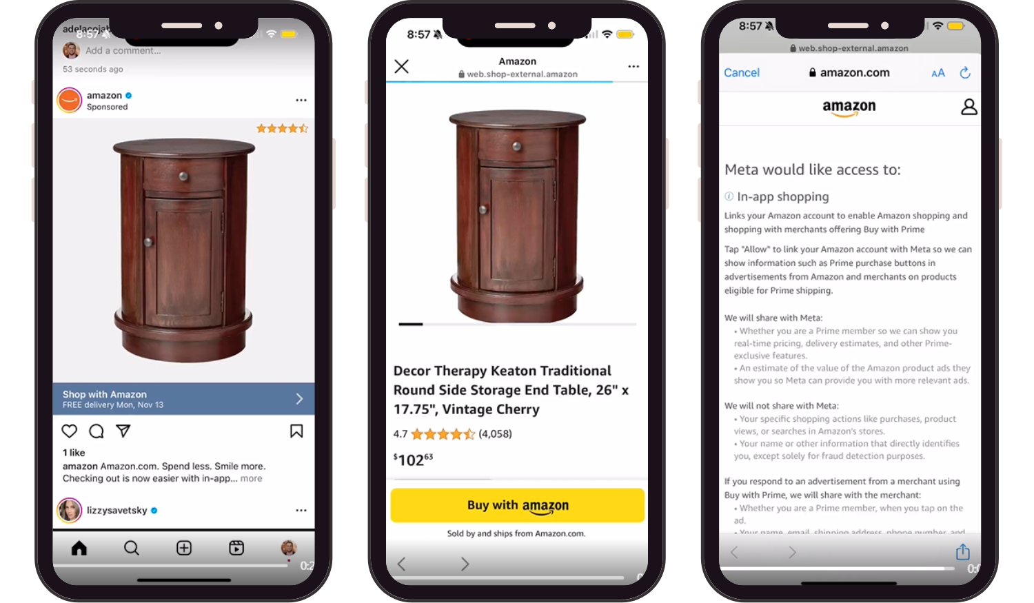 It’s clear that by partnering with Meta and Snapchat, Amazon is looking to better compete with TikTok's recent launch of TikTok Shop, taking advantage of the expansion of opportunities within social commerce Amazon customers are now able to seamlessly engage with shoppable content and purchase Amazon products directly from select ads in the apps they are using. Customers can choose to link their Instagram, Facebook, and Snapchat accounts to Amazon for in-app purchases.