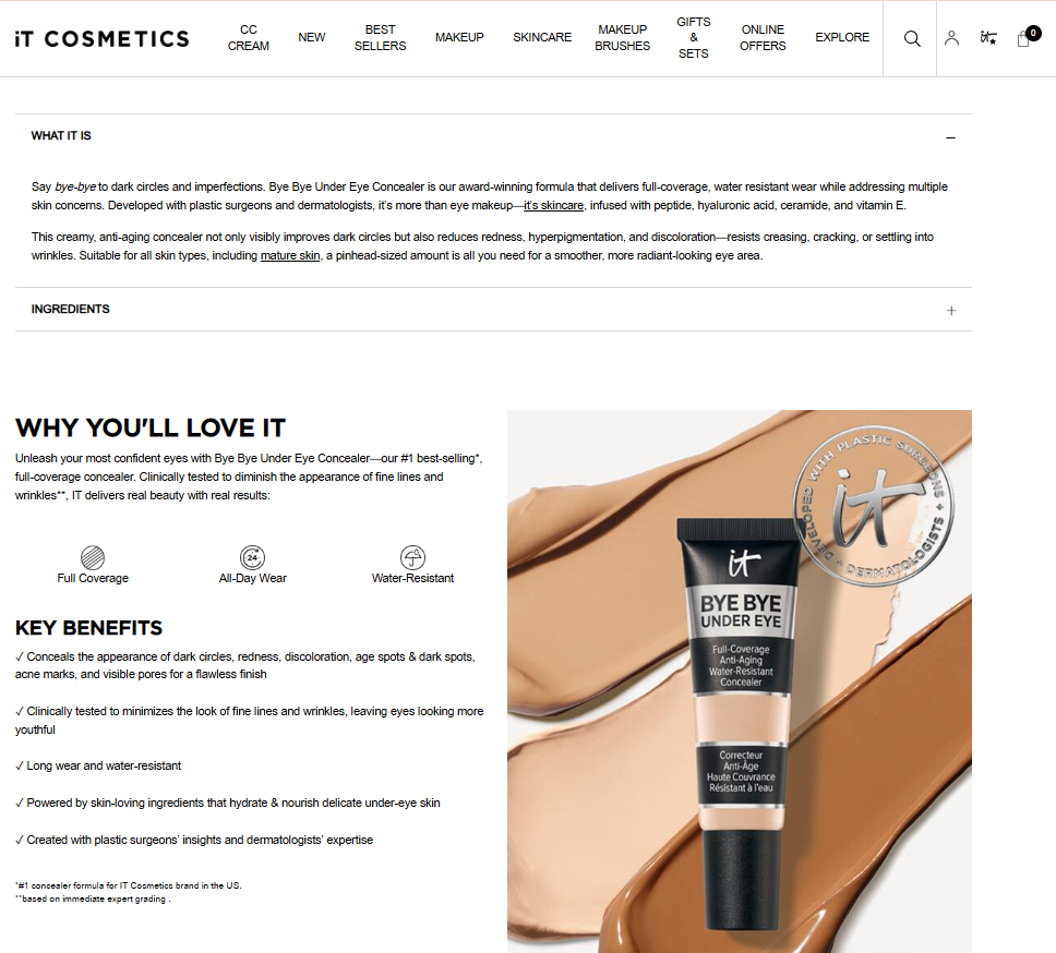 In GEO, PDPs act as structured knowledge hubs, not just conversion pages. They define a product as an entity that AI systems can reference when responding to shopper questions. Take the PDP page below, for example.