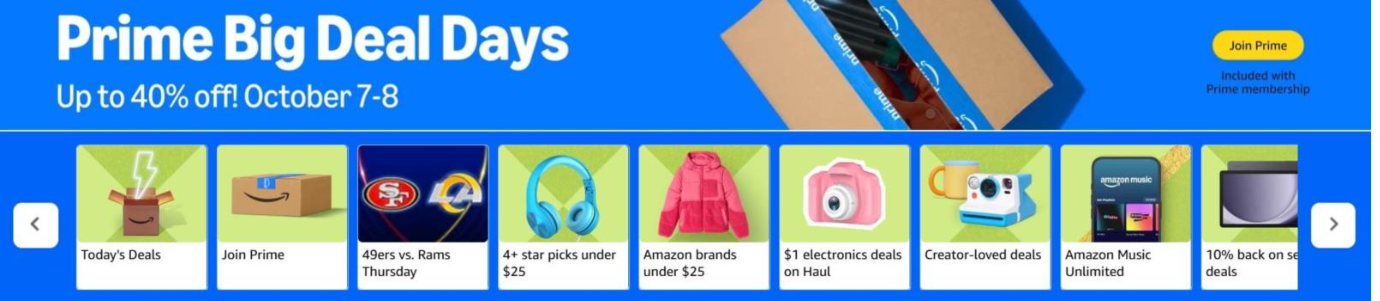 Prime Big Deal Days is Amazon’s fall shopping event designed to give Prime members early access to holiday savings, offering steep discounts and opportunities for brands to boost visibility before the peak Q4 rush.