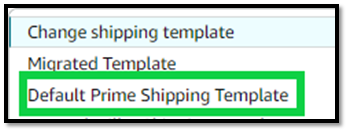 - Individually: Enroll your product by searching for it on the Manage Inventory Page, check the box, click “Action on Selected” and choose “Change Shipping Template”. From there, choose the Default Prime Shipping Template.