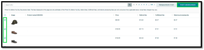 If you want to enroll only certain products, you can do so with the Manage products in bulk using a template, or manually by clicking the box to the left of the SKU(s) and “Enroll selected products”.