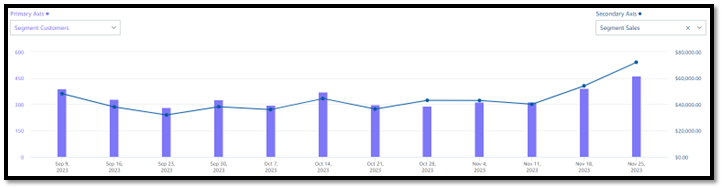 Under the Segment View, you can filter by brand, segment, reporting range, and week – click “apply” to generate a tailored promotion.