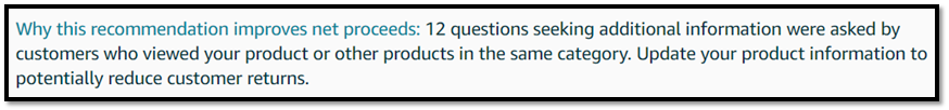 - Customer issue trends: Tailor your detail page content based on the number of customer questions and answers on a topic in your product category.