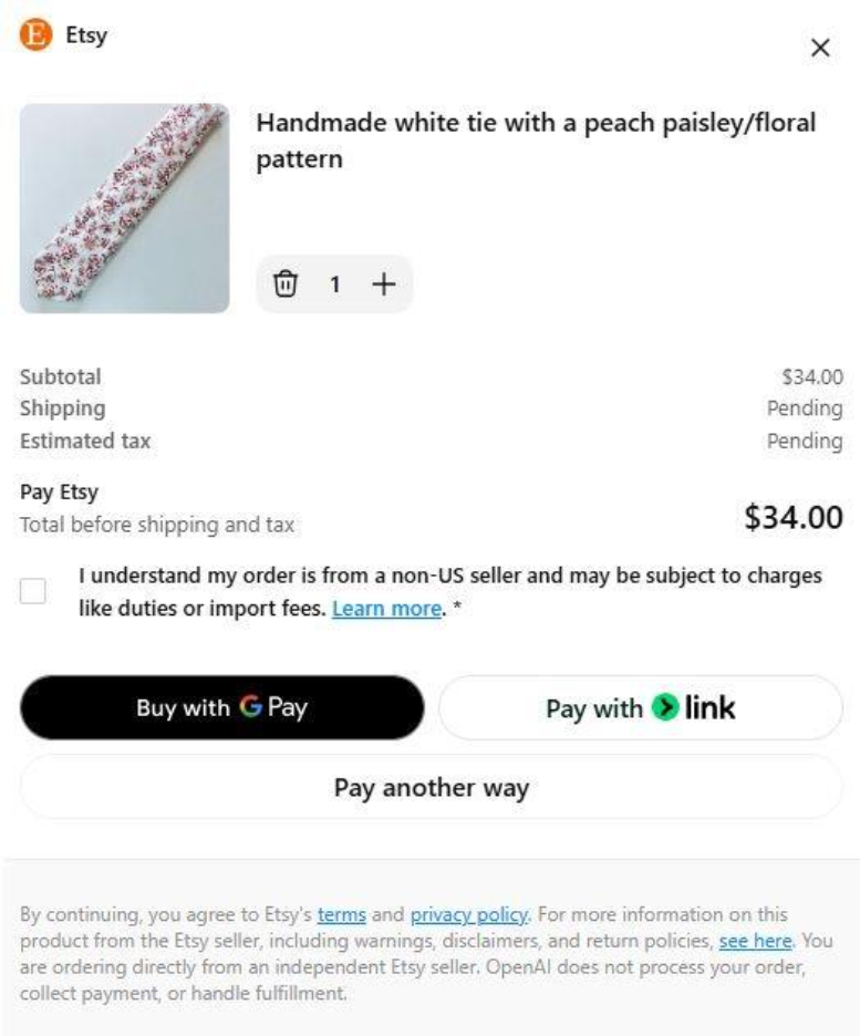 Etsy was ahead of the game as they were the first to join OpenAI’s Instant Checkout feature, with some listings already available for purchase directly with ChatGPT. According to Etsy. “As a company that stands for keeping commerce human, Etsy has an important role to play in preserving humanity in the ecommerce experience amidst rapid AI innovation.”