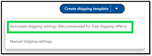 To set up an automated shipping template on Walmart, navigate to the shipping template page within account settings. From here, click “Create shipping template” and choose “Automated shipping settings (Recommended for free shipping offers).”